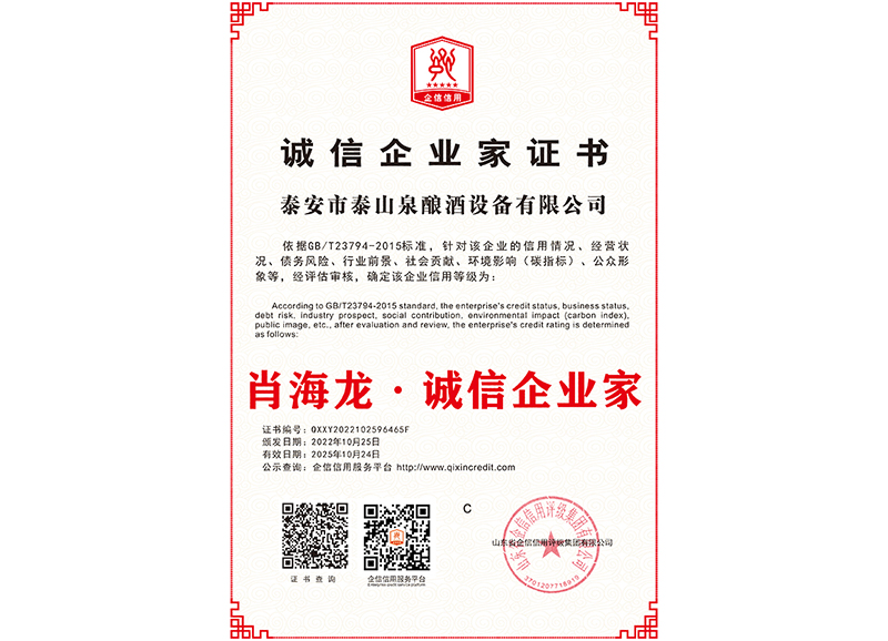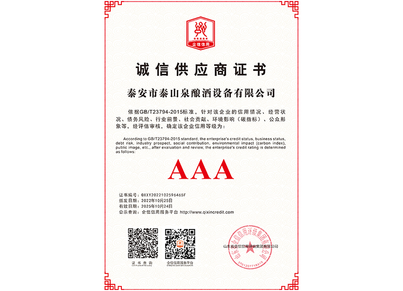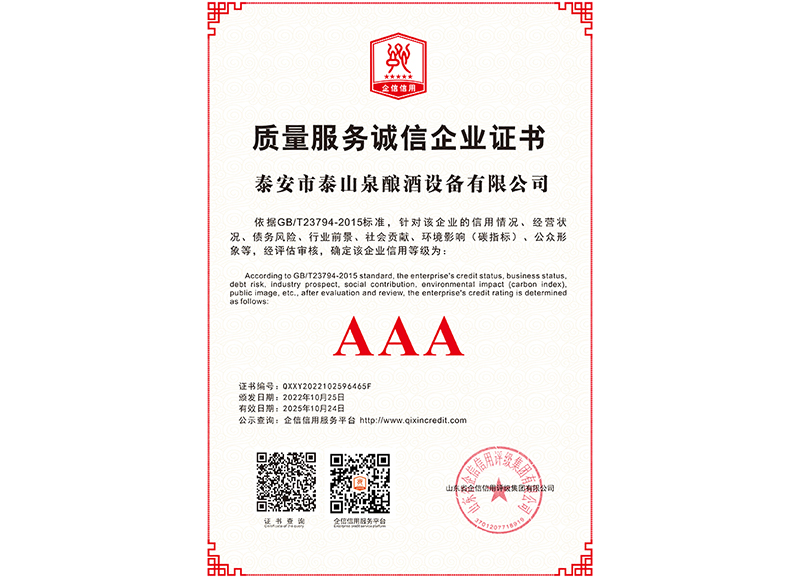 泰安市泰山泉釀酒設備有限公司,是一家專業(yè)從事釀酒設備機械化研發(fā)并集技術咨詢,工程設計,制造安裝,人員培訓及售后服務為一體的綜合性企業(yè),本公司主要產品為:大曲清香、小曲清香、大曲醬香、大曲濃香等香型白酒機械化設備?! ”竟九c中國科學院自動化研究所簽訂技術服務合同,引進先進技術,研究生產全自動化機械釀酒設備,由中國科學自動化研究所的技術支持,打造最先進的生產釀酒設備,公司有信心打造全國最先進白酒...